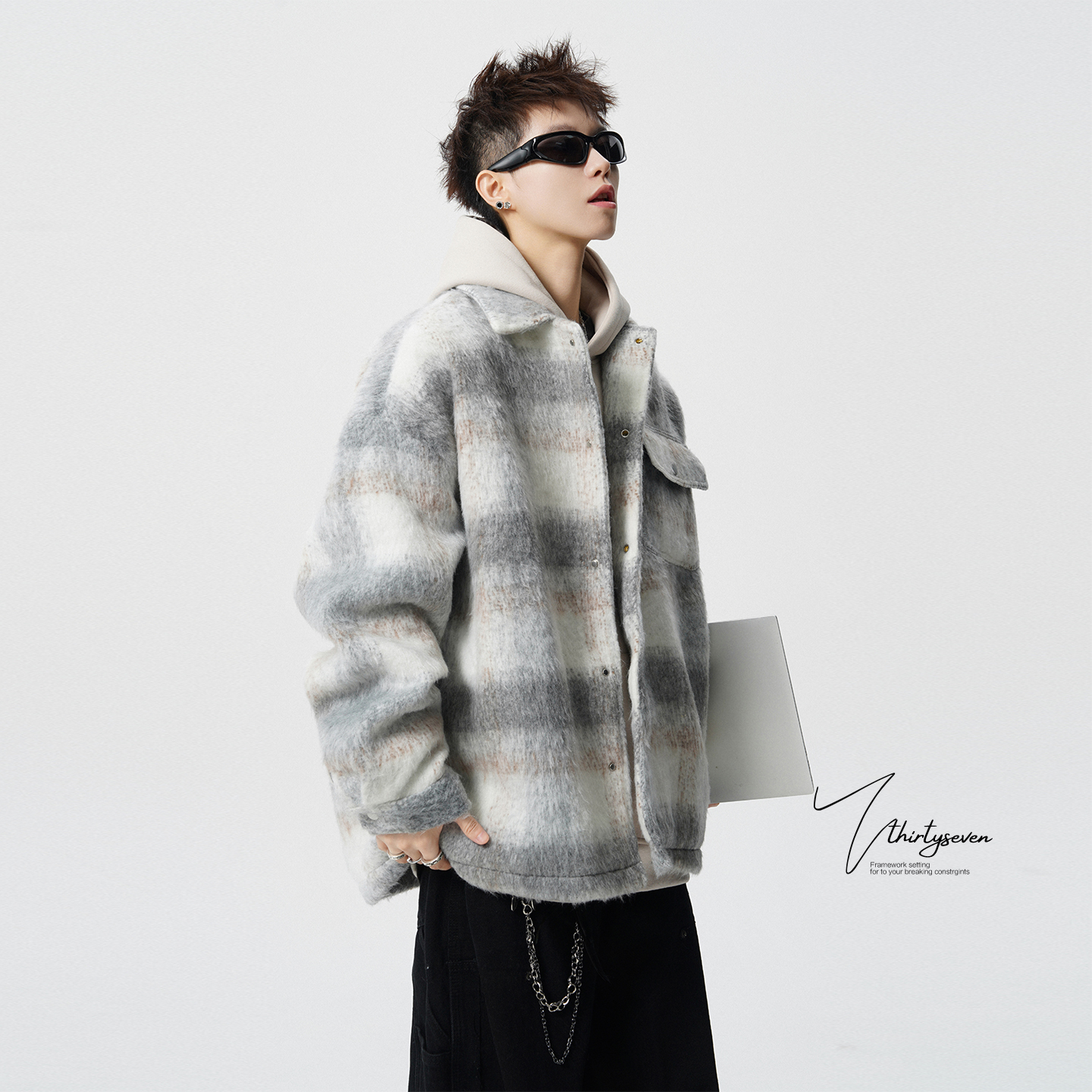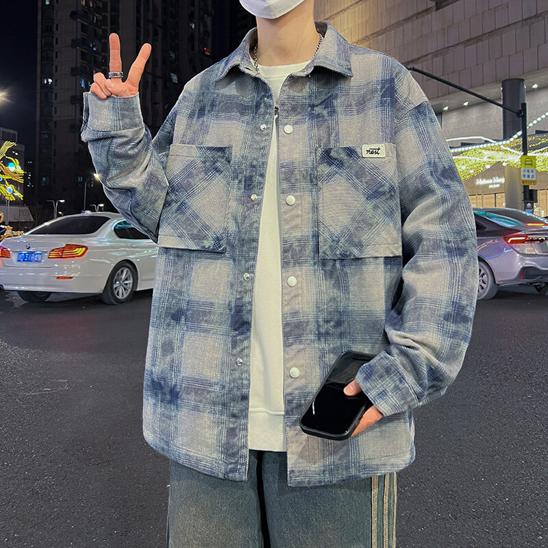青少年春秋季新款牛仔外套男2025年潮流帅气格子衬衫夹克休闲上衣