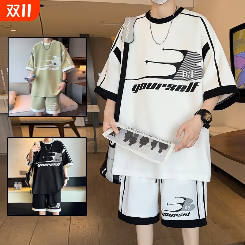 夏季新款青少年中学生男15圆领上衣帅气运动套装短裤短袖大童16岁