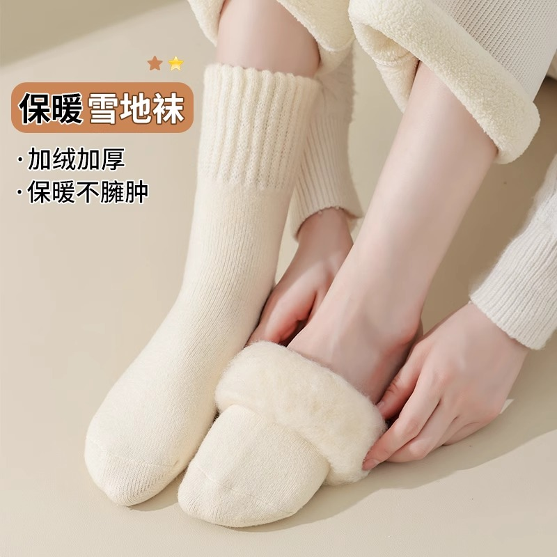 秋冬季加厚加绒羊绒保暖中筒袜