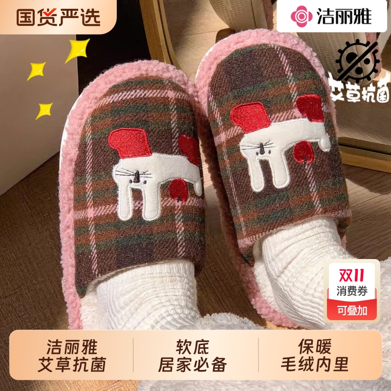 洁丽雅抗菌棉拖鞋女款防滑防臭