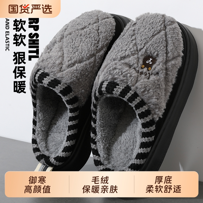 回力保暖防滑舒适毛绒棉拖鞋
