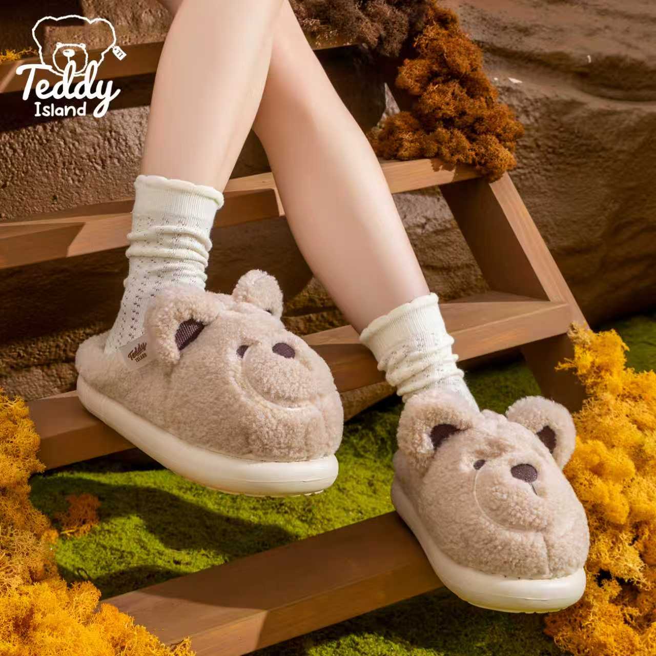 棉拖鞋女士可爱棕熊居家室内