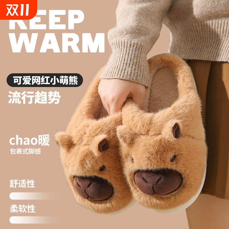 卡皮巴拉棉拖鞋女可爱冬季男女情侣外穿防滑居家保暖包跟棉鞋秋千