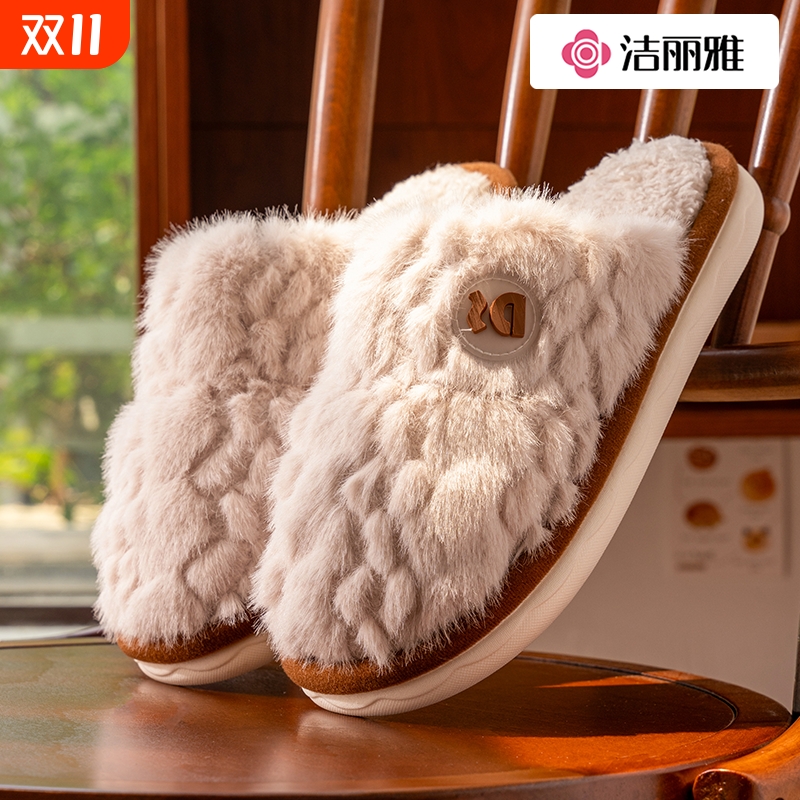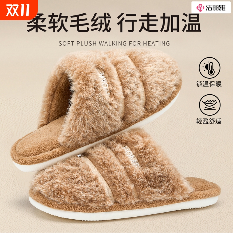 洁丽雅棉拖鞋女款冬季2025新款室内居家保暖毛绒拖鞋男款家用男士