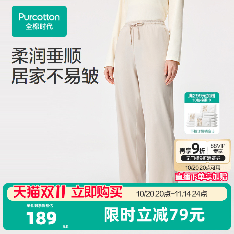 全棉时代女士睡裤2025年秋季新款水光棉家居长裤裤子长裤居家裤