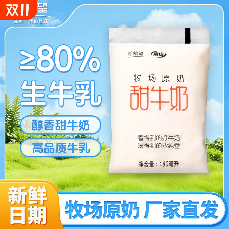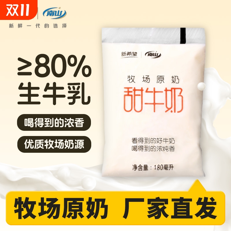 超值装新日期南山新希望甜牛奶袋装透明袋网红早餐奶180ml整箱