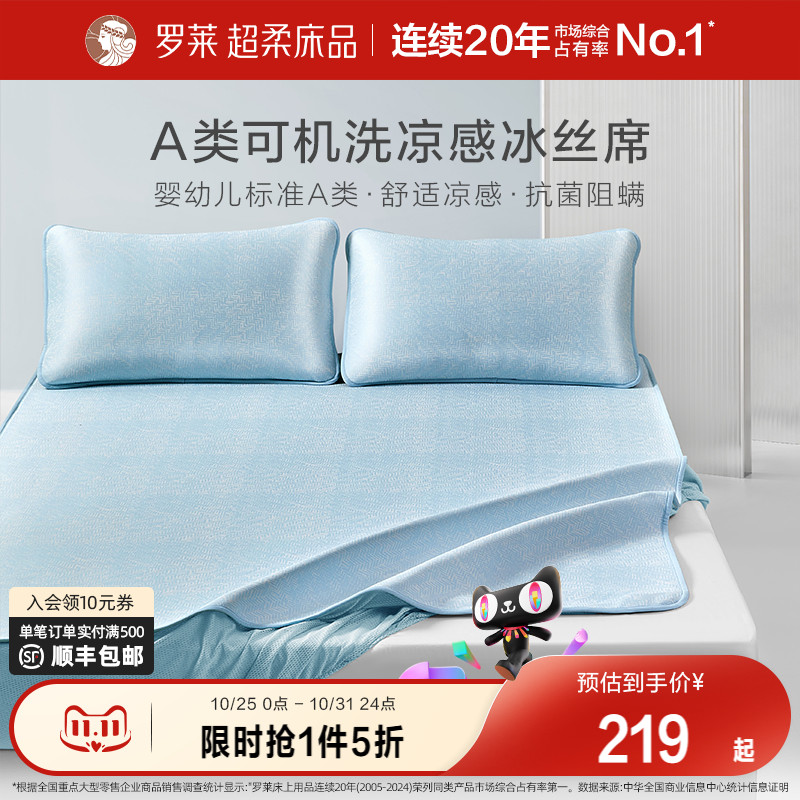 罗莱罗莱家纺冰丝凉席夏季凉感席子夏天新品可水洗A类抗菌防螨