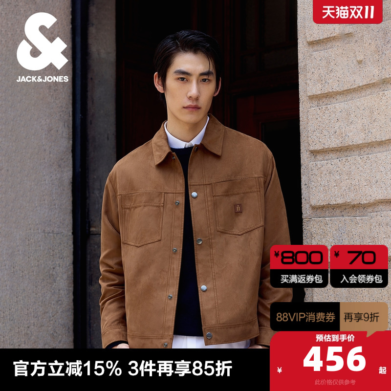 杰克琼斯男装夹克秋季常规版型摁扣门襟多口袋可调节底摆长袖上衣