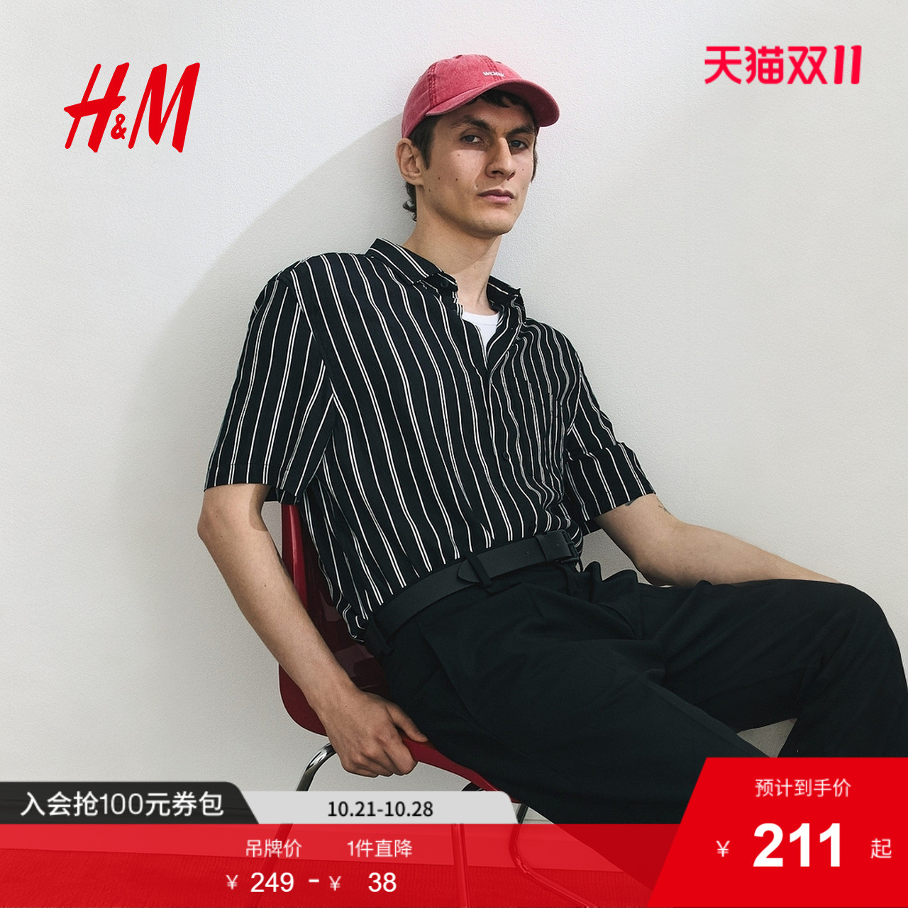 HM2025夏季新款男装常规版型短袖衬衫1295318