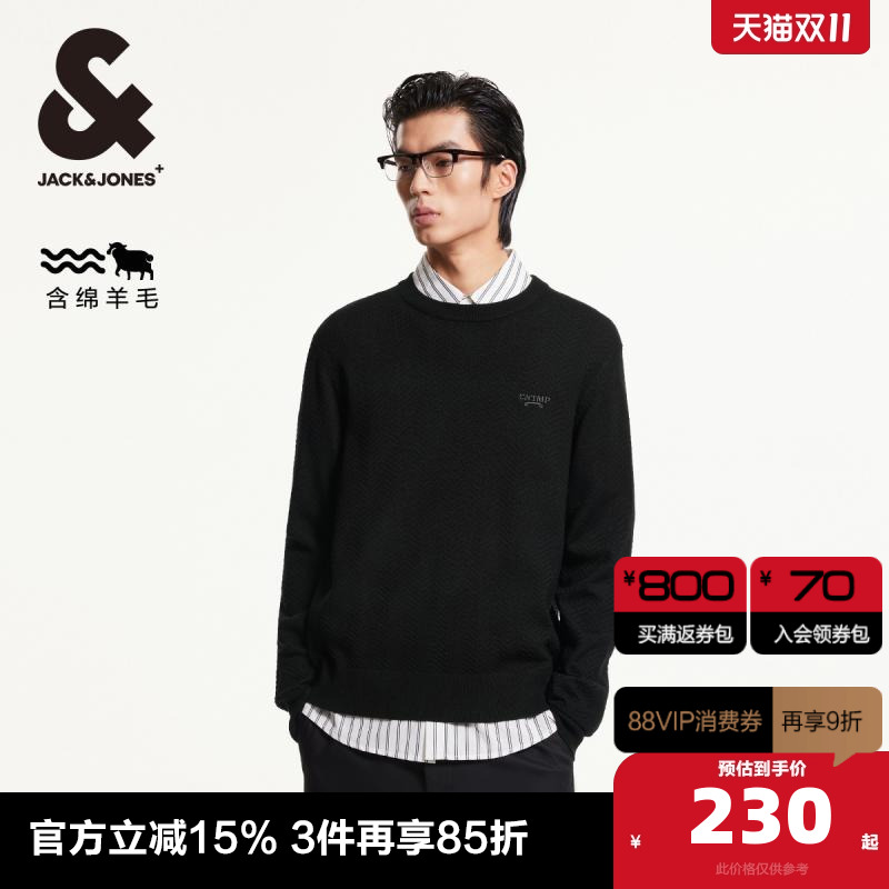 杰克琼斯春季新款潮舒适休闲亲肤字母刺绣圆领常规针织衫男款男装