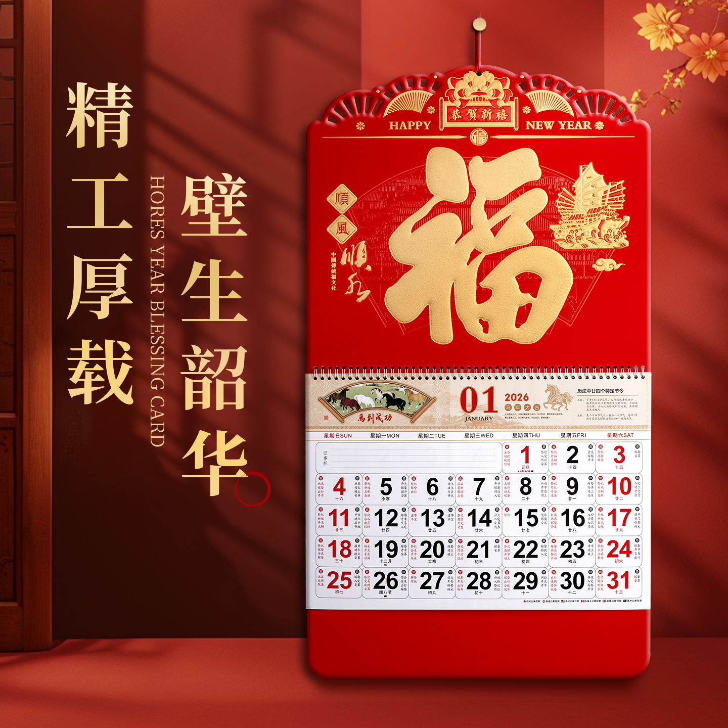 挂历2026年福至运来福字吊牌