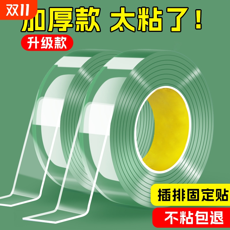 透明胶带纳米双面胶高粘度排插固定贴自粘强力无痕免打孔墙面加厚胶贴