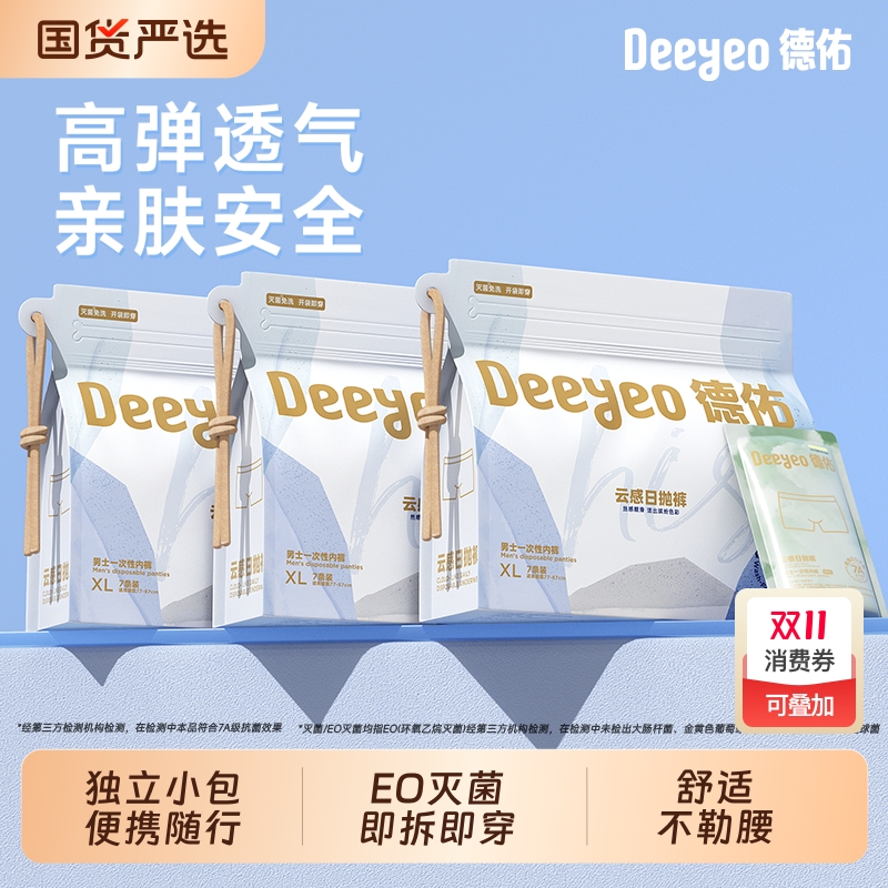 德佑男士一次性内裤平角日抛裤出差旅行便携免洗独立包装大码