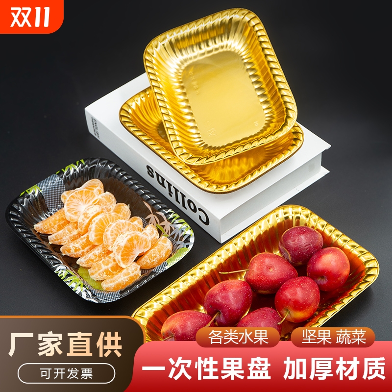 一次性生鲜托盘平底金色水果打包盒高档葡萄车厘子草莓陈列包装盒