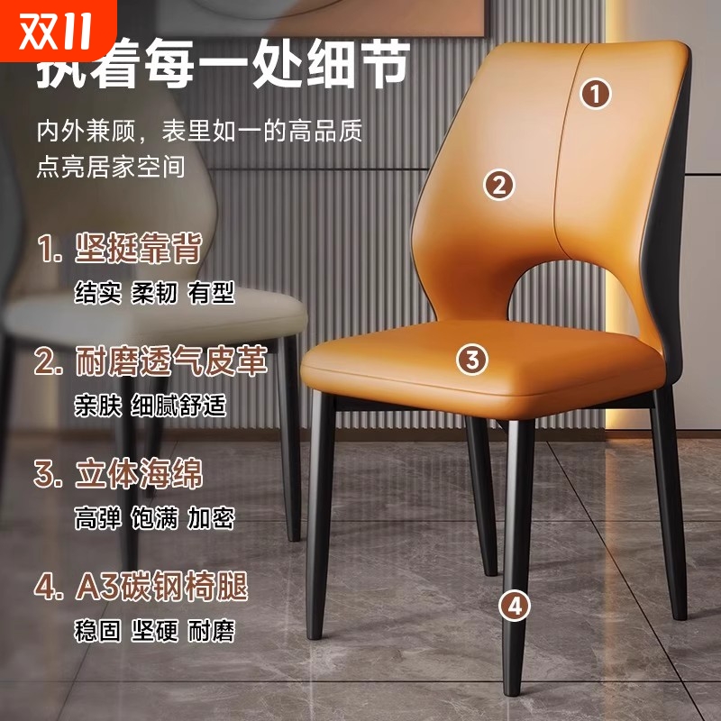 餐椅家用餐桌靠背椅子意式轻奢高级感吃饭椅现代简约餐厅凳子久坐