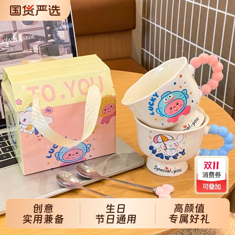 可爱陶瓷杯子高颜值马克杯礼盒伴手礼生日礼物女生实用送闺蜜水杯