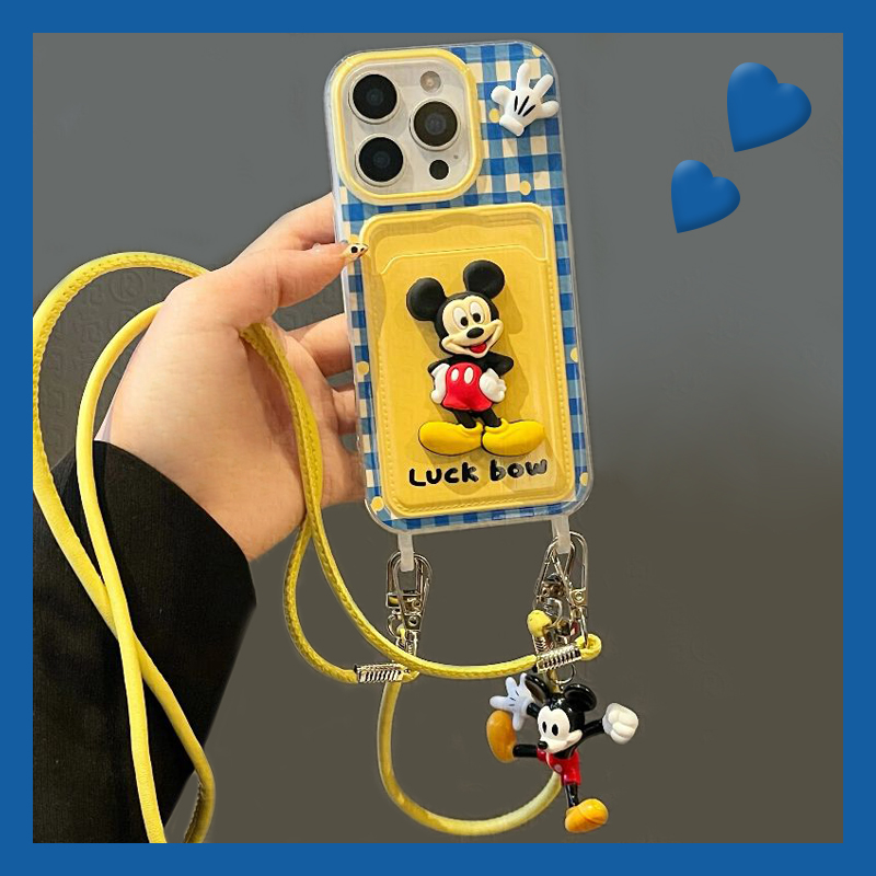 格子手掌米奇卡包适用苹果16promax手机壳华为pura70荣
