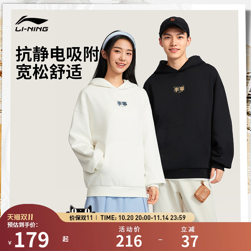 李宁卫衣 运动时尚系列 男女同款保暖抗菌抗静电宽松套头卫衣