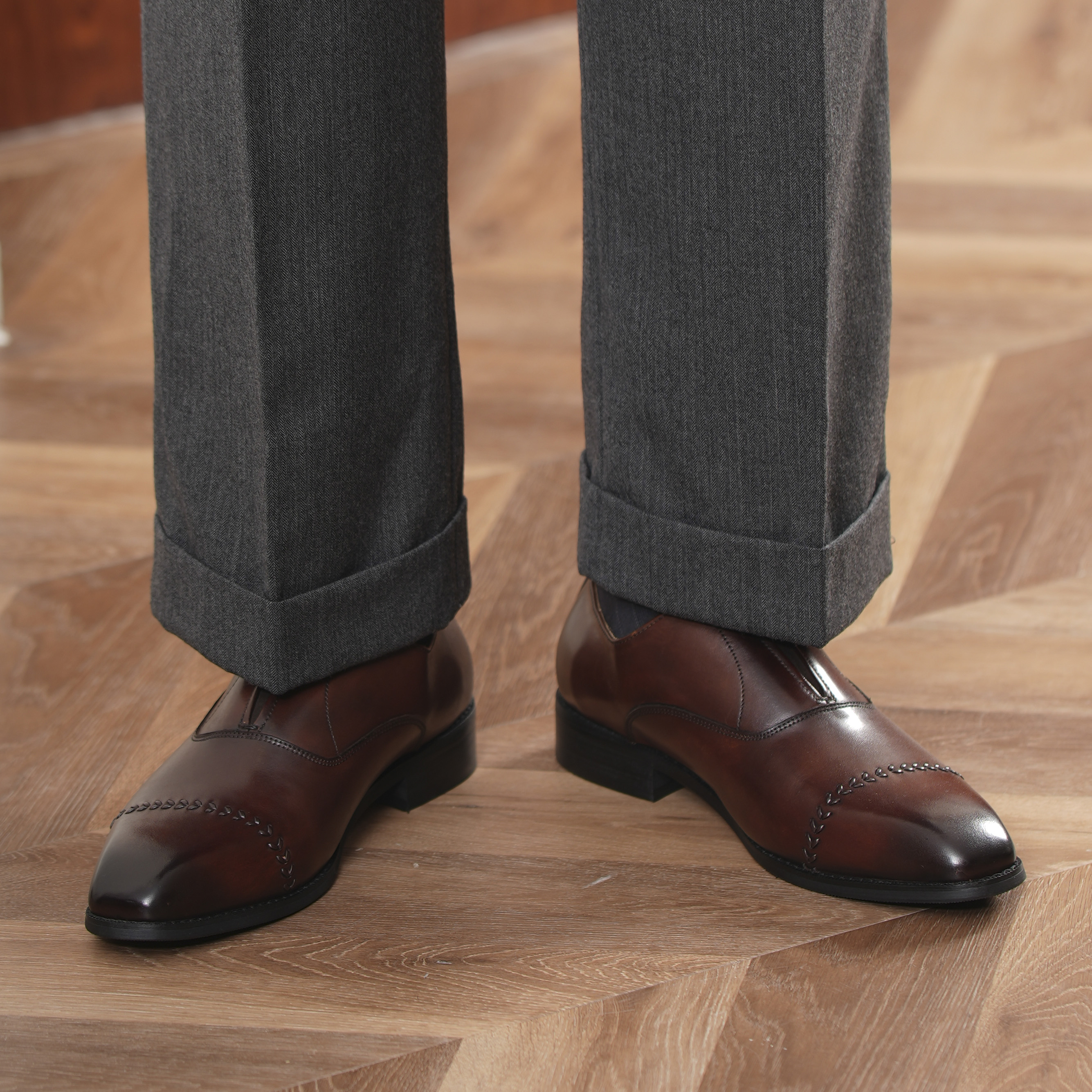 壹植鞋履皮鞋男结婚正装商务真皮英伦风增高三接头一脚蹬男士皮鞋