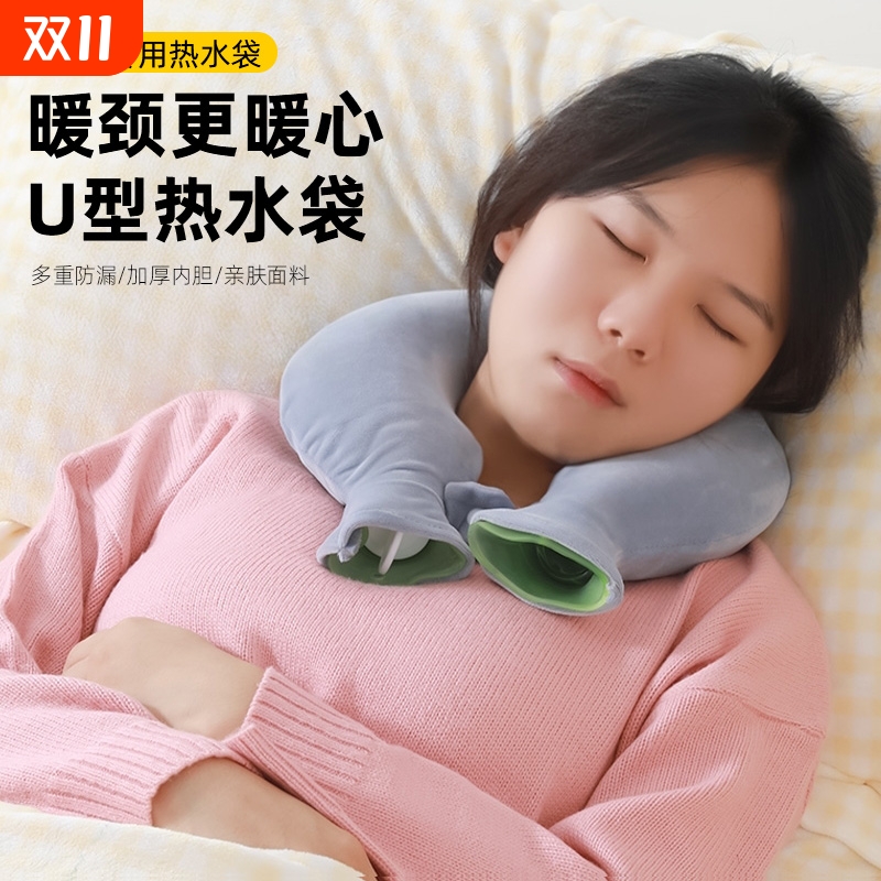 U型热水袋冰敷热敷小U枕暖水袋护颈椎肩热敷袋颈椎专用冰敷大口径
