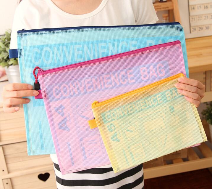 网格收纳包透明防水拉链文件袋