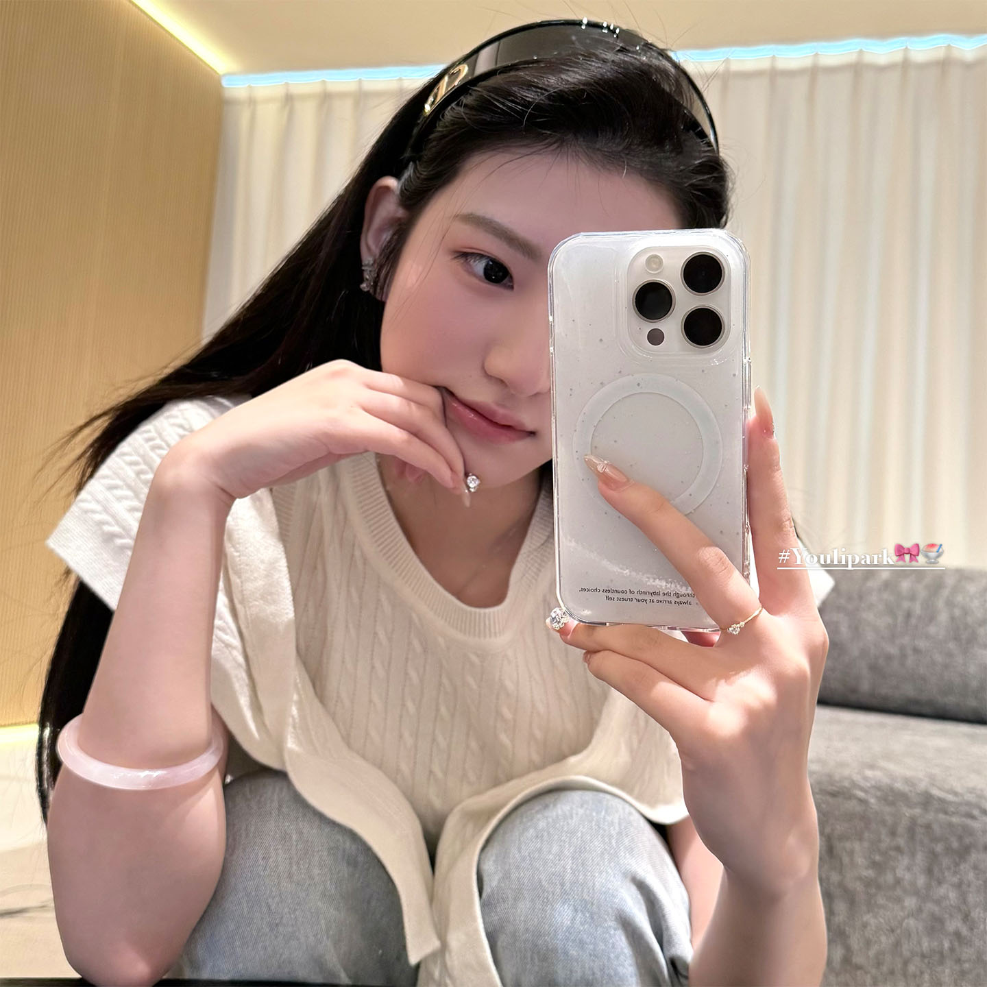 奶油蓝茶杯磁吸支架苹果手机壳女