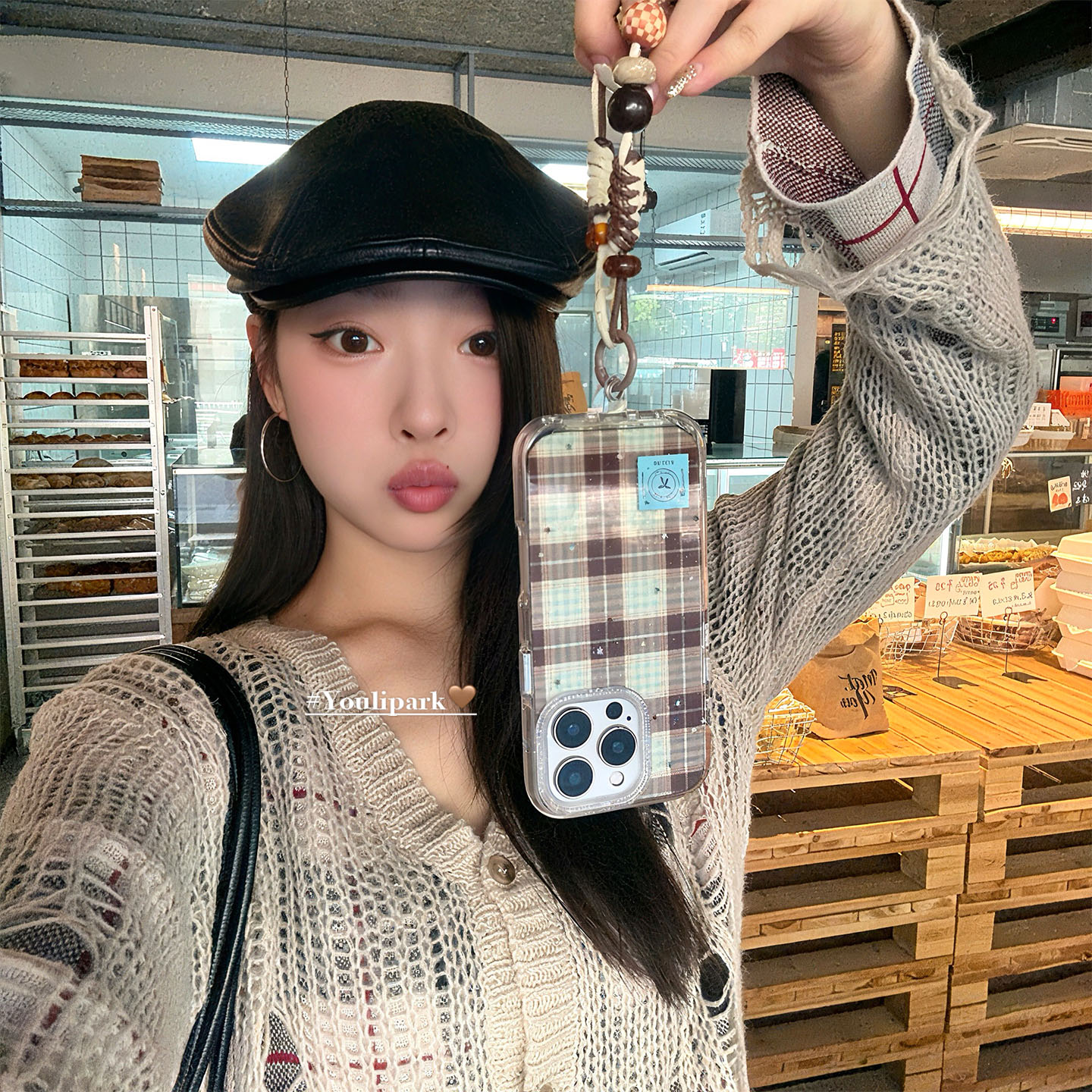 可爱格纹蝴蝶结猫咪苹果手机壳女