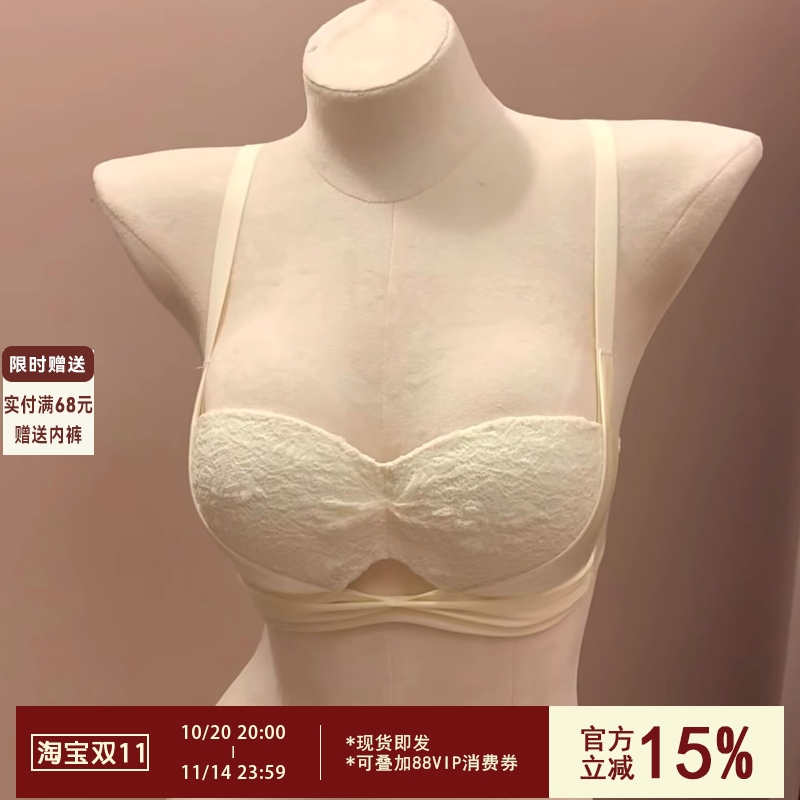 蕾丝半杯内衣女无痕无钢圈聚拢小胸显大圆圆杯上托收副乳文胸套装