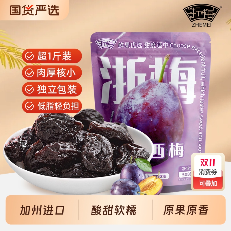 浙梅西梅干加州大西梅干508g袋装单颗粒独立包装办公室休闲小零食