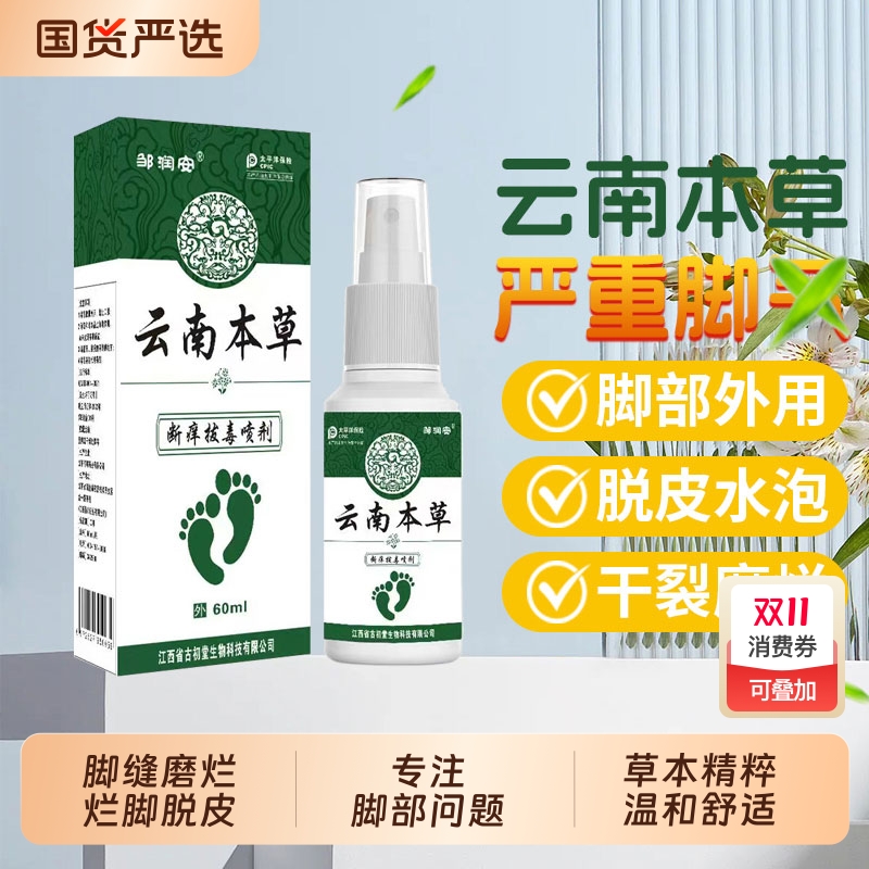 云南本草脚臭喷雾止痒烂脚丫脱皮脚趾缝烂痒真菌感染脚臭膏杀菌