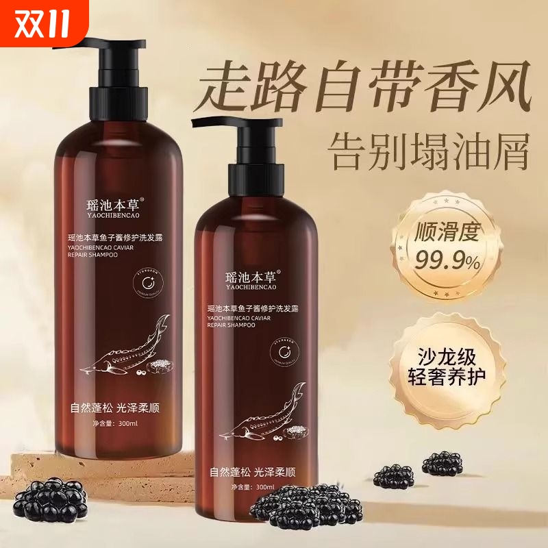 瑶池本草鱼子酱洗发露抖同款音转头发变黑神器正品控油滋养修护
