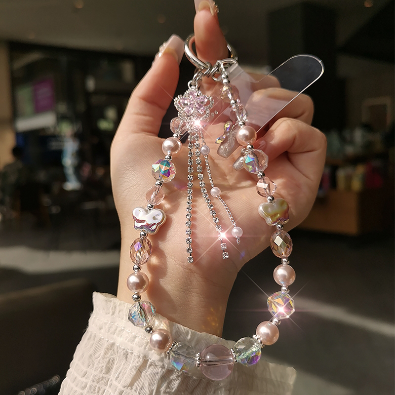 精致奢华闪钻珍珠水晶手机钥匙扣