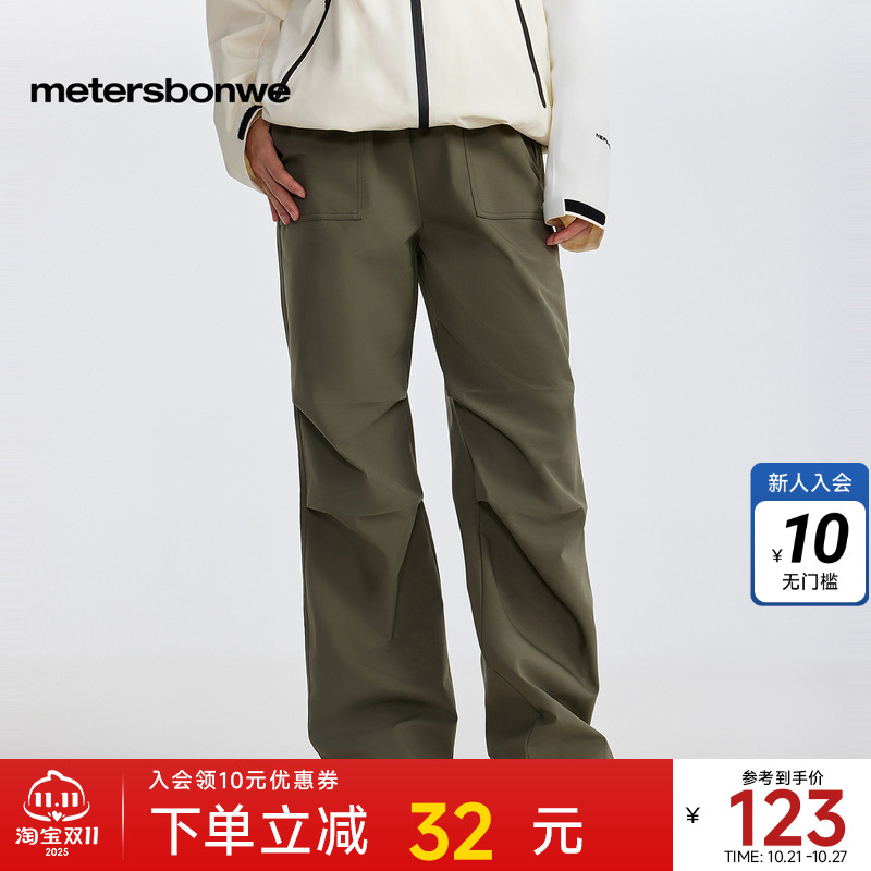 骆驼女装女款单层冲锋裤秋冬防水登山徒步裤子加绒保暖机能风长裤