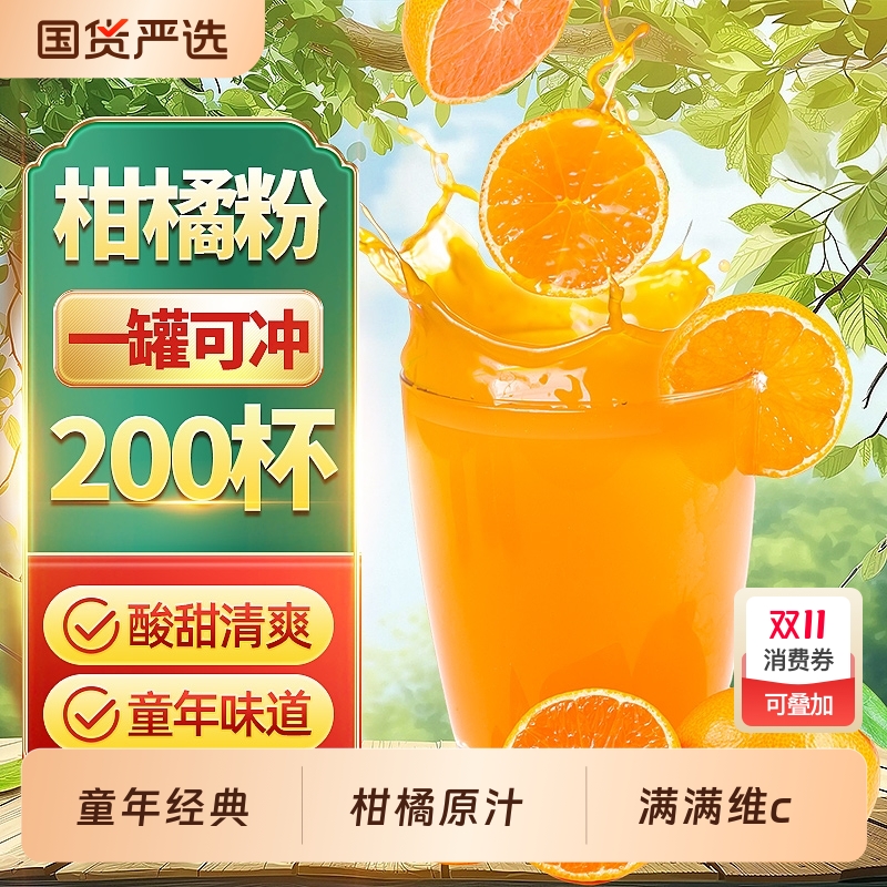 老式桔子粉柑粉橙汁风味饮料橙子柑橘维c果汁冰镇解腻80后冲饮旗