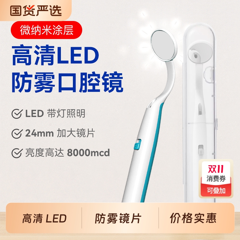 高清LED微晶防雾口腔镜内窥镜镜子牙医牙科家用带灯检查工具牙齿