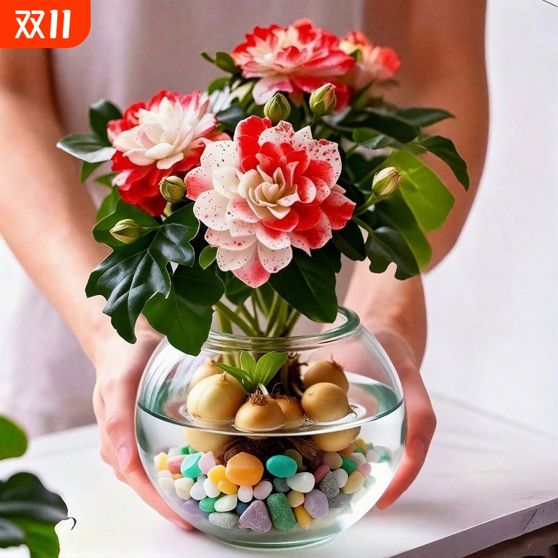 春羽球水培植物室内吸甲醛懒人盆栽卧室客厅办公桌面绿植开花耐阴