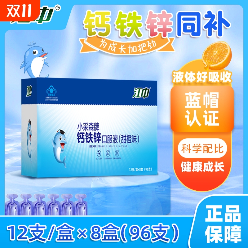 江中钙铁锌口服液儿童青少年学生液体钙甜橙味口服溶液96支礼盒装