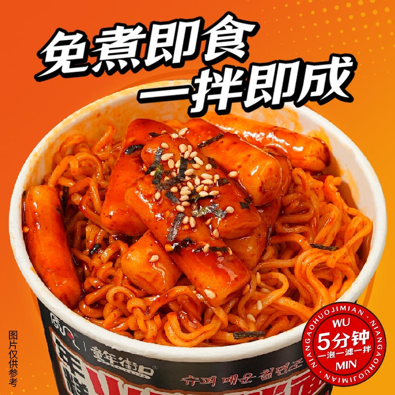 【6桶】童年街口年糕火鸡面桶装甜辣宿舍速食品免煮超辣泡面整箱
