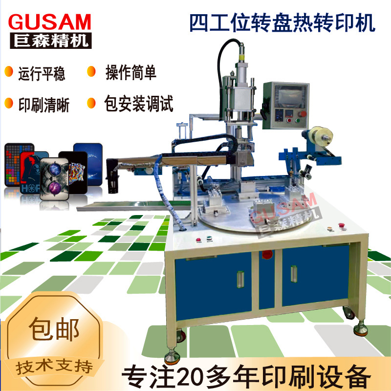 四工位转盘平面热转印机 多色塑胶玩具壳烫印图案烫字机厂包打样