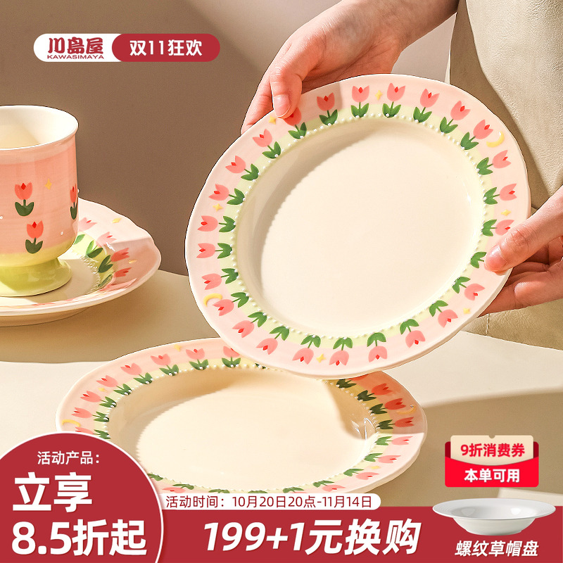川岛屋郁金香陶瓷碗盘子家用餐具