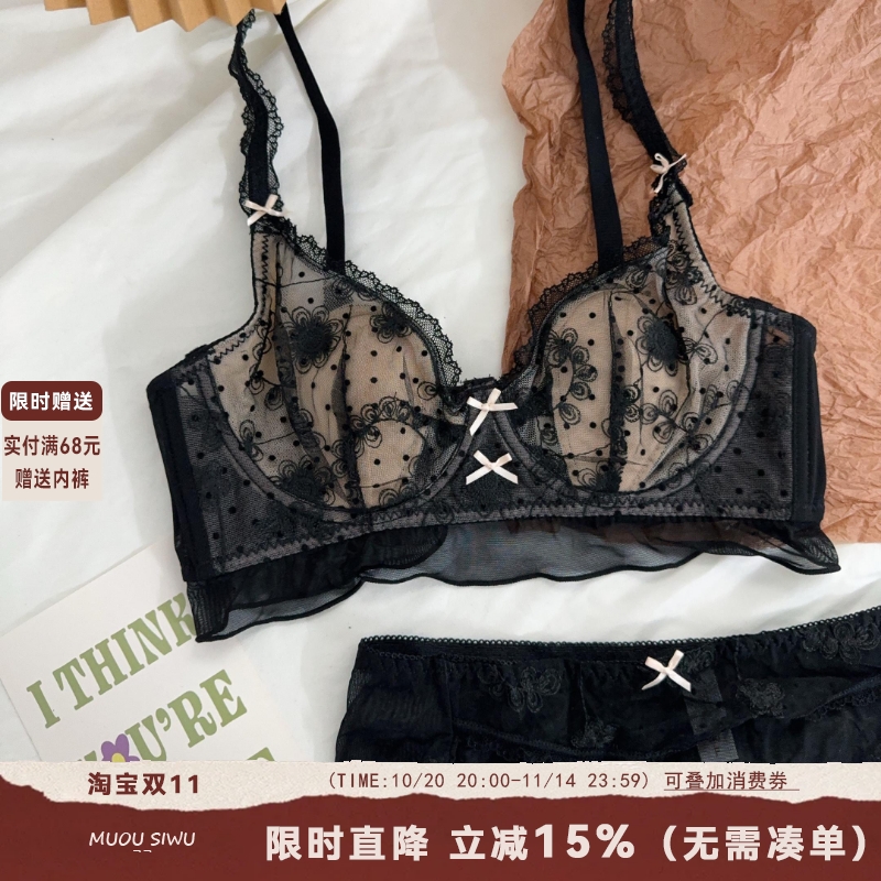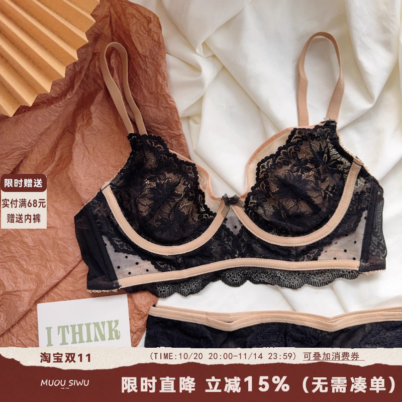 法式性感半杯内衣女薄款蕾丝纯欲风小胸聚拢上托防下垂文胸罩套装