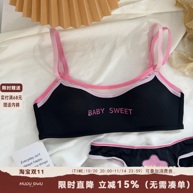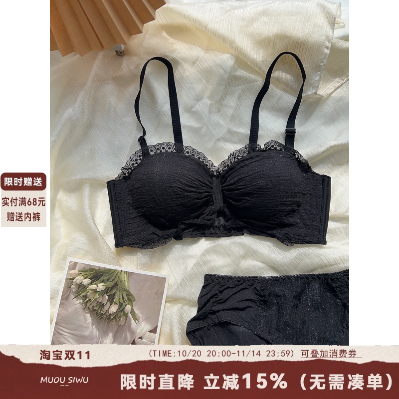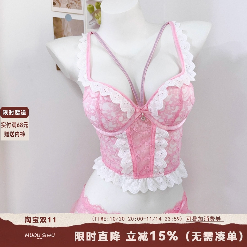 日系甜美可爱纯欲风内衣内裤套装女无钢圈防走光抹胸性感少女文胸