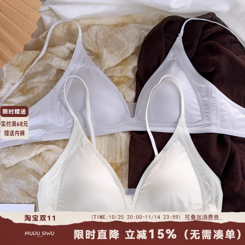 性感纯欲法式三角杯内衣女无痕无钢圈薄款深v小胸聚拢美背文胸罩