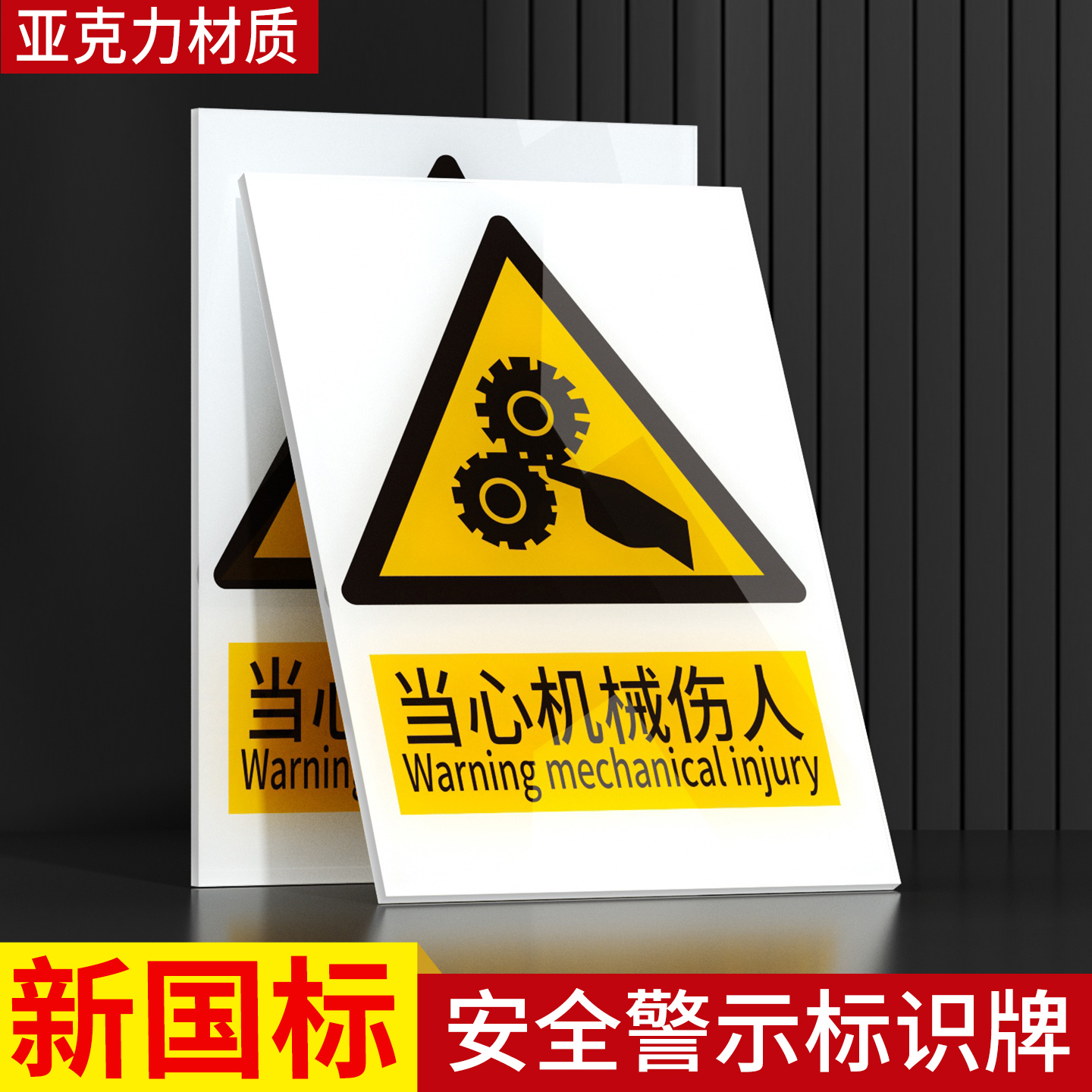 新国标安全警示牌当心机械伤人电标识贴有电危险警示贴车间工厂当心触