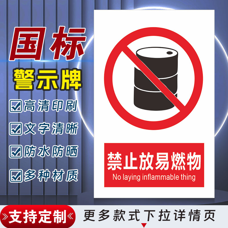 禁止放置易燃物新国标安全标识牌定制工厂车间消防警示牌有电危险提示