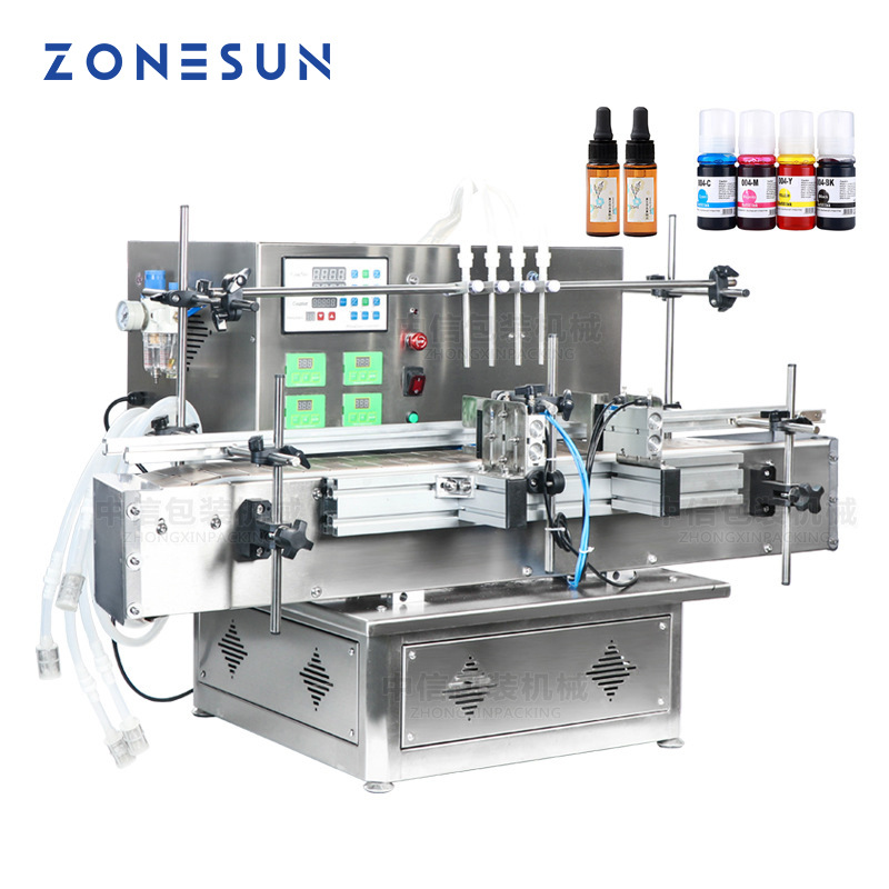ZONESUN全自动4头液体灌装机果汁乳液蠕动泵化妆品瓶传送带罐
