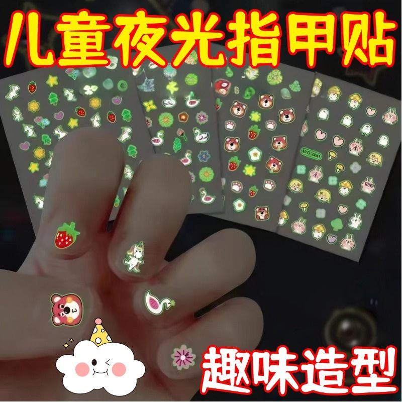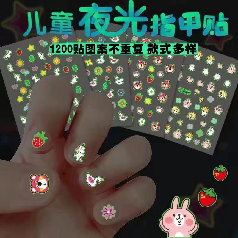 夜光指甲贴儿童小女孩美甲亮光贴纸安全发光可爱环保防水公主卡通