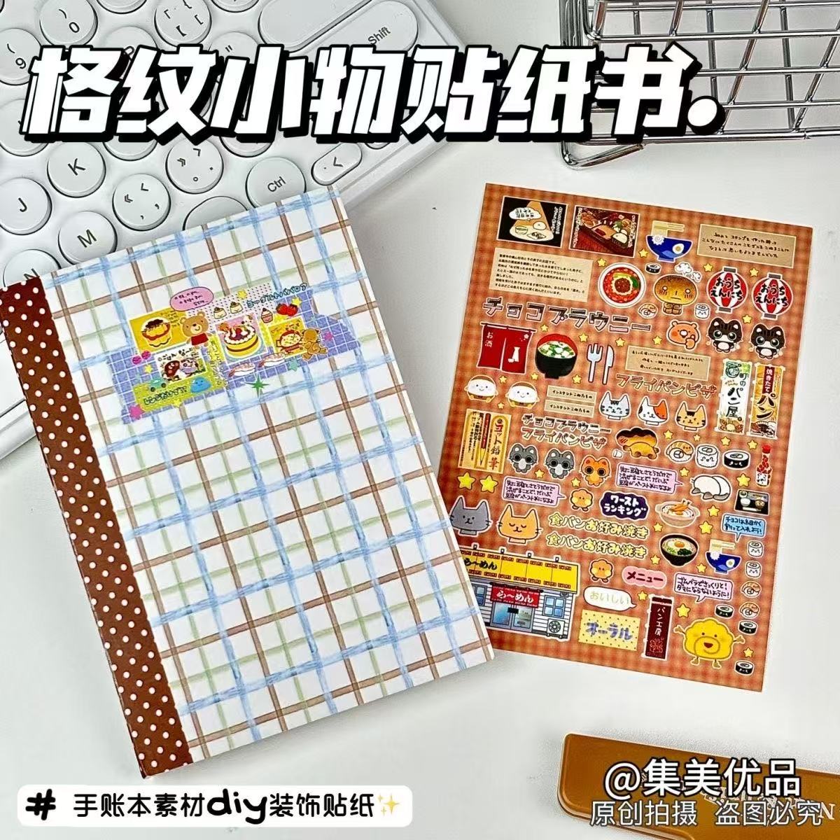 【新品现货】格纹小物贴纸书高颜值ins日系贴纸书文字古早贴纸本