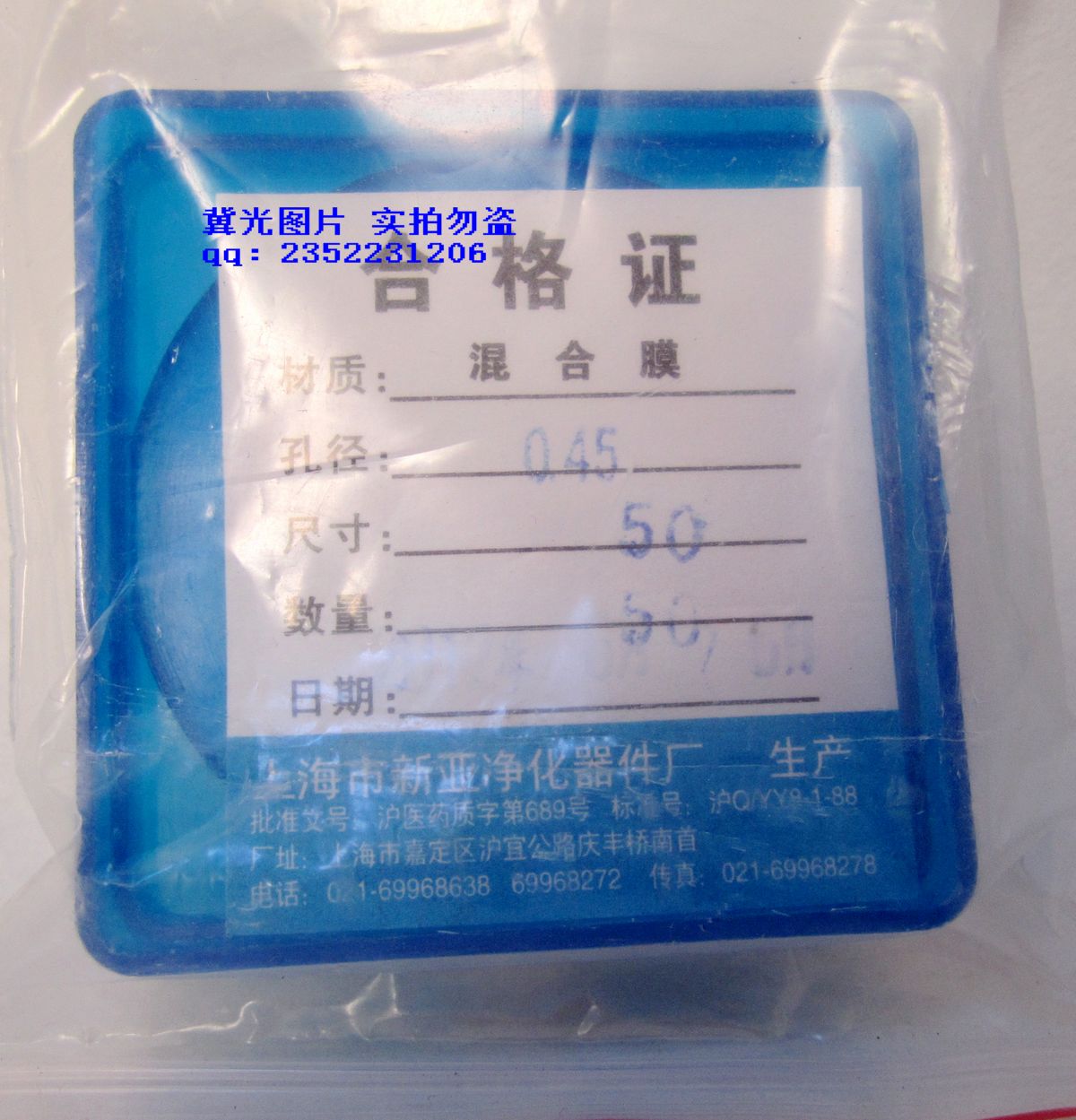 上海新亚滤膜 混合膜微孔滤膜 50mm*0.45um 50张/盒