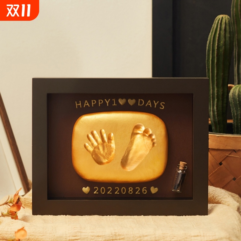 满月手脚印新生婴儿纪念品周岁礼物百天手印相框宝宝手足印泥胎毛